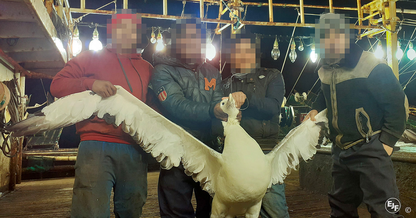 In some cases the capture of sharks and marine mammals was accidental, according to the testimonies; in others it was intentional. Some videos show fishers finning sharks — cutting fins off living sharks, then throwing them into the sea to die. Shark fins are an expensive delicacy in some Asian countries. An Indonesian fisher interviewed in June 2025 told EJF he had seen his vessel’s head engineer intentionally harpoon “around 50” seals in order to take their fangs. “The rest of their bodies were thrown away,” he said.